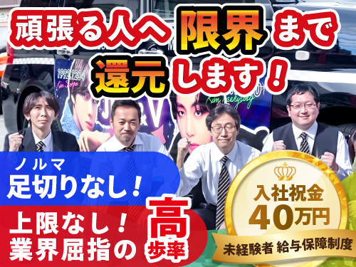 ❖会社見学いつでも開催しています(社内の雰囲気・事務所など気軽に見学して下さい!) ❖最高年収衝撃の1,300万円超!年収1,000万円越え多数在籍! ❖JPNTAXI(ジャパンタ...