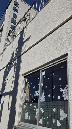 横断歩道正面の窓ガラスもクリスマスモード