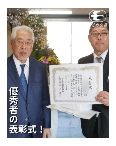 今年も1月に1年間の乗務員の皆さんの功績に対し、表彰式を行いました。10年間無事故表彰1名