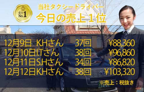 太洋モータース 今日の売上トップドライバー12月9日 K.Hさん 37回 ¥88,360