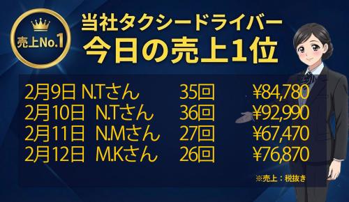太洋モータース 今日の売上トップドライバー