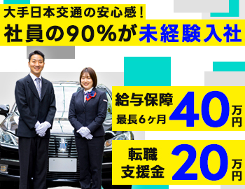 【業界最大手の日本交通グループに仲間入り!!】★給与保障6ヶ月40万円★転職支援金20万円で入社をバックアップ★経験者も未経験者も働きやすい大阪のタクシー会社です!