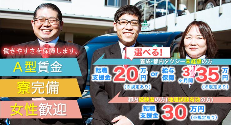 寮完備!★未経験の方は!選べる!転職支援金20万円 or 給与保障3ヶ月間35万円(※当社規定による) ★都内経験者の方(地理試験有効の方)は!転職支援金30万円!都内希少のA型賃金のタクシー会社です!