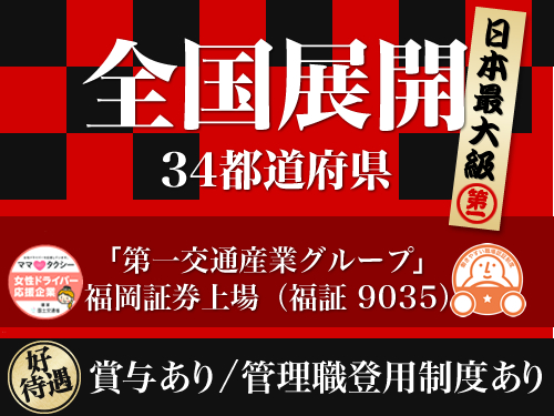 ★「働きやすい職場認証制度」登録企業★ 【福岡証券上場(福証9035)】業界大手「第一交通産業グループ」のタクシー会社!全国34都道府県で事業展開する大規模企業です!★土日祝、夜間...