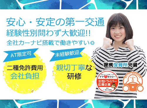★「働きやすい職場認証制度」登録企業★ カード手数料乗務員負担なし!!安心の業界最大手の第一交通産業グループだから未経験者でも安心です◎提携保育所あり☆お子様がいらっしゃる方も安心...