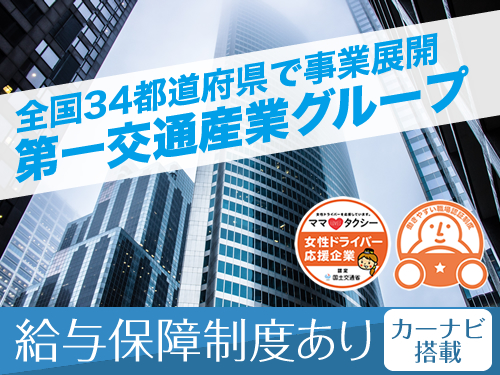 ★「働きやすい職場認証制度」登録企業★ 【未経験者へ給与保障あり★】カード手数料乗務員負担なし!!安心の業界最大手の第一交通産業グループだから未経験者でも安心です◎観光タクシーや介...