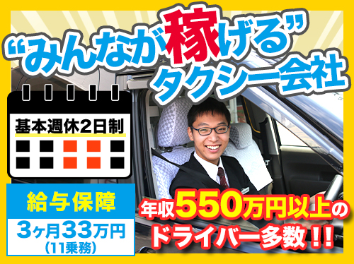 【業界初‼︎超安心の賃金形態になりました!】大手グループだから安定・稼げる!でも堅苦しさは一切ナシ!平均売上が高いタクシー会社だから、稼ぎ方をしっかり学べます!◎プライベート重視の...