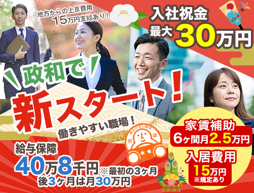 入社祝い金40万円/30万円(経験/未経験)★同乗研修からJPN★日曜完全定休★退職金あり★月売上100万円超え多数在籍!